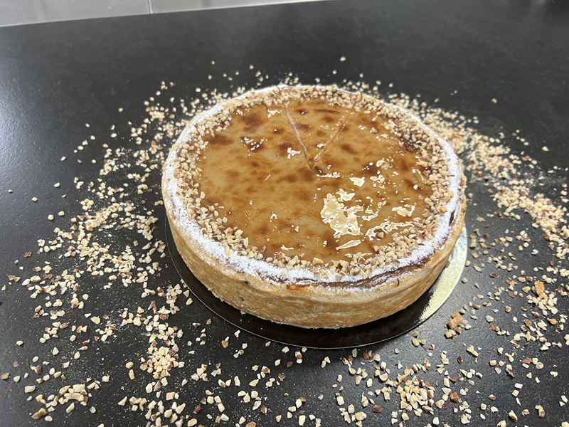 Flan pâtissier à pâte feuilletée aérienne. L’appareil à flan est une crème pâtissière cuite.(œufs,lait).